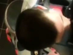 Biker gives blowjon to skin in toilets