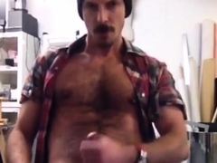 He wanks and cum on his workplace